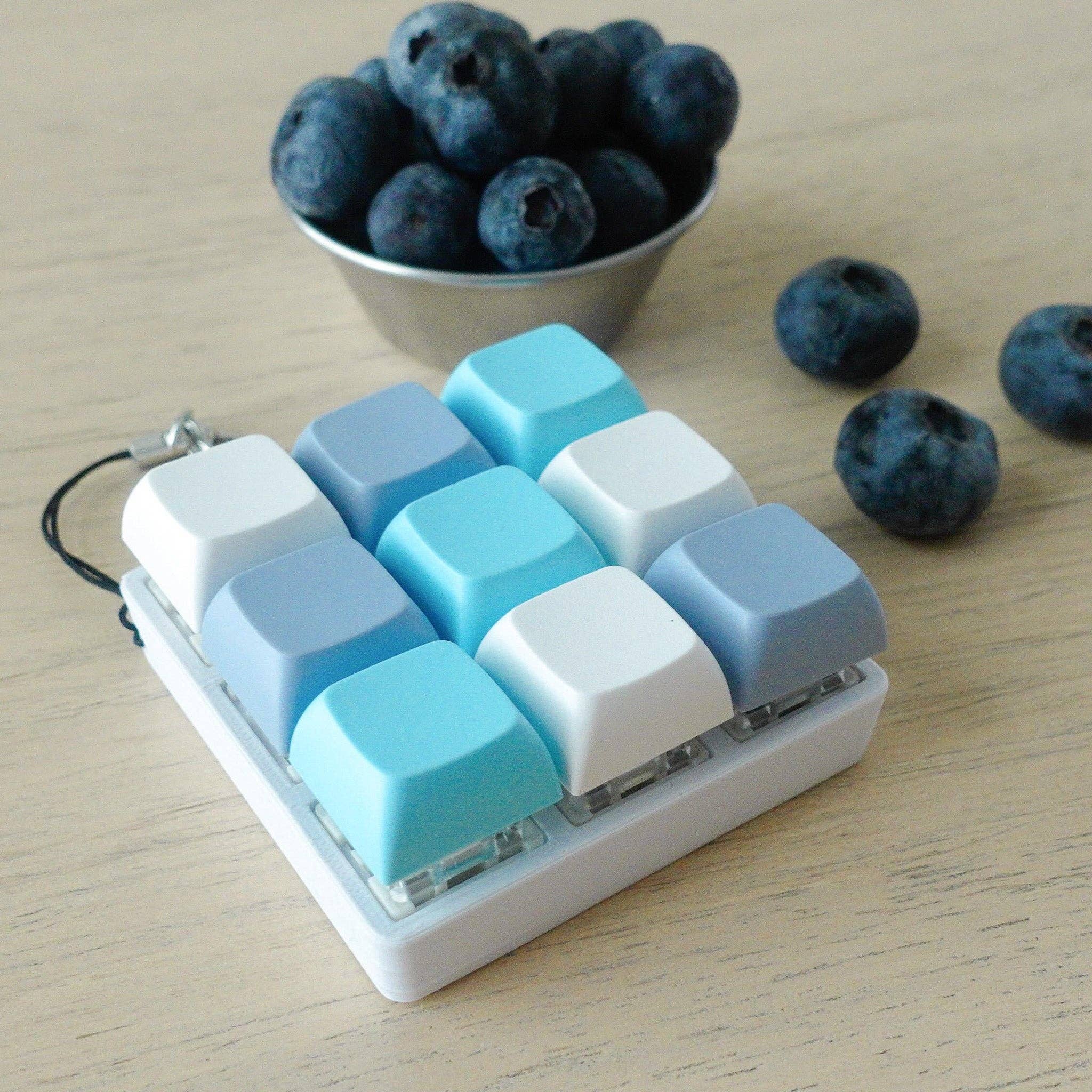 Introducing our captivating 3x3 Clicky Fidget Square, designed to enhance your fidgeting experience with the serene and soothing colors of Blueberry Fields. This delightful fidget toy features a harmonious blend of frost, pastel blue, and light blue keycaps, reminiscent of a peaceful blueberry field on a crisp morning. Each click delivers a satisfying tactile sensation, perfect for those who appreciate the auditory and sensory feedback of mechanical switches.