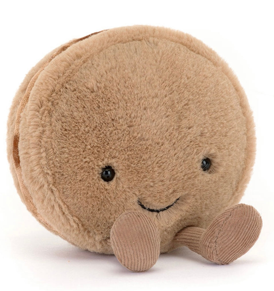 Amuseables Mona Macaron is deliciously soft in chocolate fur. With cordy cocoa feet, and a velvety filling, Mona has an embroidered Jellycat logo on the back for a truly luxurious treat!
