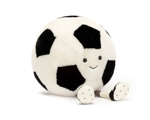 A goal scoring triumph of a gift for any football fan! Amuseables Sports Soccer Ball is a stylish monochrome character created from tessellating soft fur panels, fine cord legs with knee high socks and sporting a pair of suede boots with embroidered stud and lace detail.