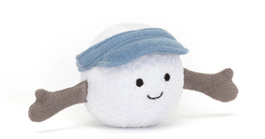 Great things most definitely come in small packages. Amuseables Sports Golf Ball is impeccably presented in a white textured fabric, sporting a suedette summer blue visor and stitched face. With a big smile and two thumbs up this is a hole in one gift for any golf devotee.