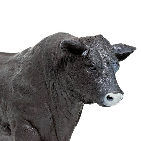 Size and Color: Coal black colors with light grey accents at the hooves and face give this Angus Bull an intense look and amazing realism. At 5¼" long, it's a worthy size, about the length of a pop can.