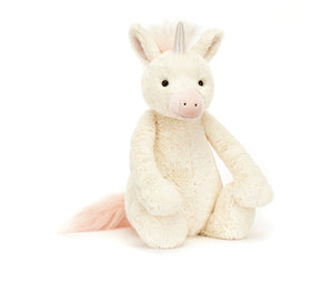 Bashful Unicorn is heavenly to hold, in souffle-soft vanilla fur. This fabulous pal is wonderfully detailed, with strawberry-sundae nose and ears, and silky mane and tail. And check out that squashy holographic horn, shining with magical light!