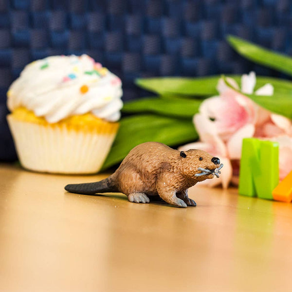 Characteristics: With a mouth full of twigs and branches, this beaver is carrying wood back to build up its dam! Expertly crafted and painted by hand, our beaver toy figurine features life-like scientific detail.