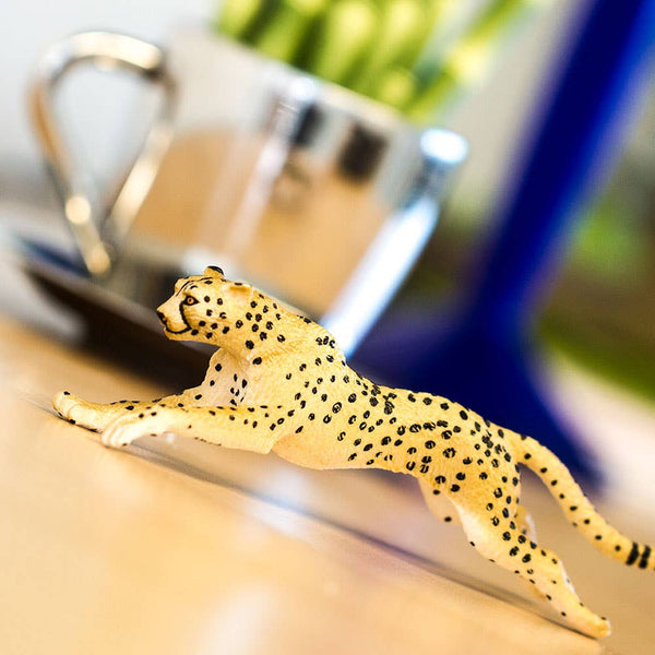 Size: 6 inches long and 2 inches tall, this cheetah toy figurine is a little larger than a soda resting on its side.