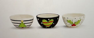 Each piece is adorned with a bold black and white pattern such as polka dots or stripes with a unique Christmas symbol, including a tree, a heart and holly berries. A part of the Heartful Home Collection by designer Tracy Pesche, this piece features whimsical work centered around the heart. Bursting with creative expression, these hand-sculpted and painted ceramics feature unique textures and dimensional details that add spirit to holiday entertaining.