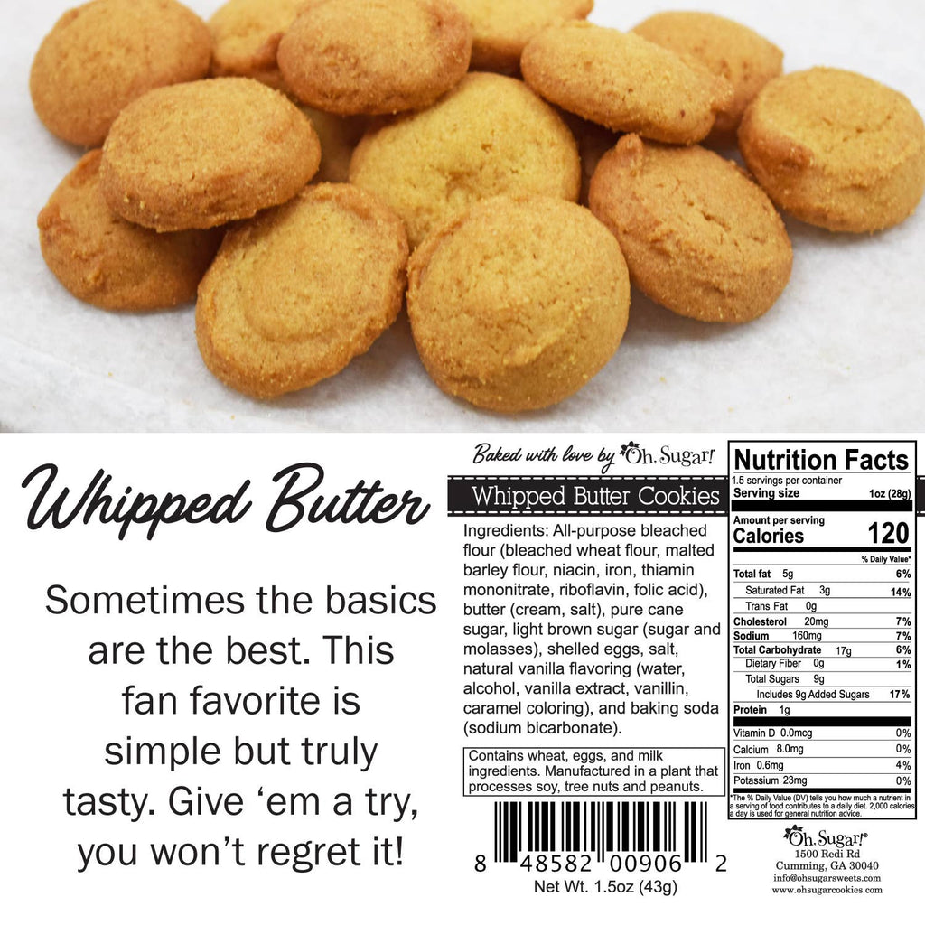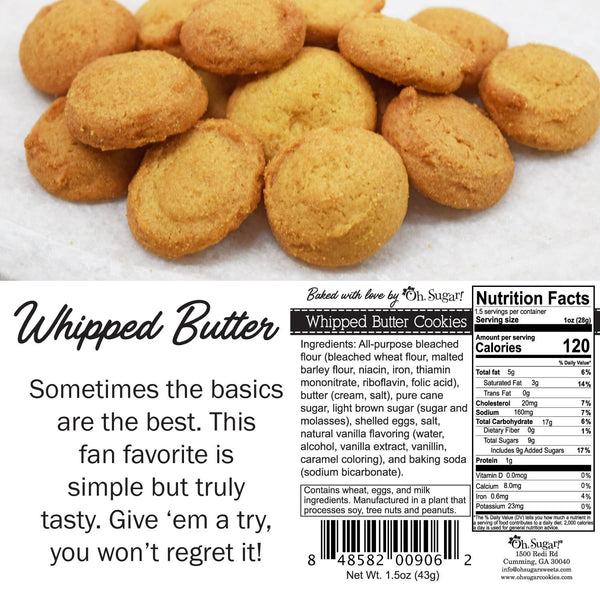 - Whipped Butter Cookies were born when we took the chocolate chips out of our Chocolate Chip cookies.