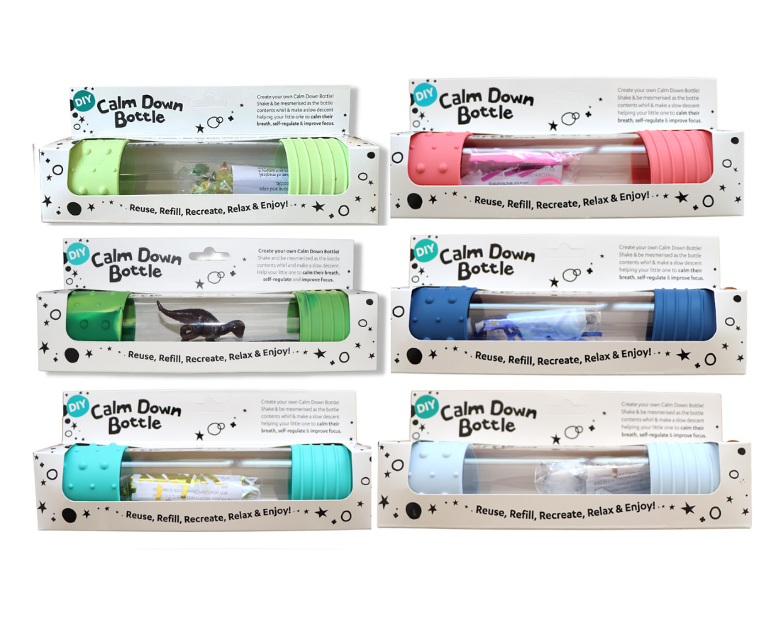Jellystone Designs' award-winning DIY Calm Down Bottle is a unique sensory bottle, where you receive all the creative elements required to create a sensory bottle perfect for your child. Just add warm water and a dash of washing-up liquid and it's ready to go! With this option, you can refill and reuse the sensory bottle for endless creative options.
