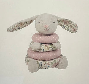 Hop on over to Mon Ami’s latest baby activity toy. Our Parisian Petit Bunny is an adorable baby stacker toy featuring four soft fabric rings in eye-catching colors and prints. Help a little one boost motor skills and eye-hand coordination with this beautifully detailed baby activity toy. Ideal for babies who are a few months old to toddlers, our baby stacker toy provides hours of amusement and educational play.