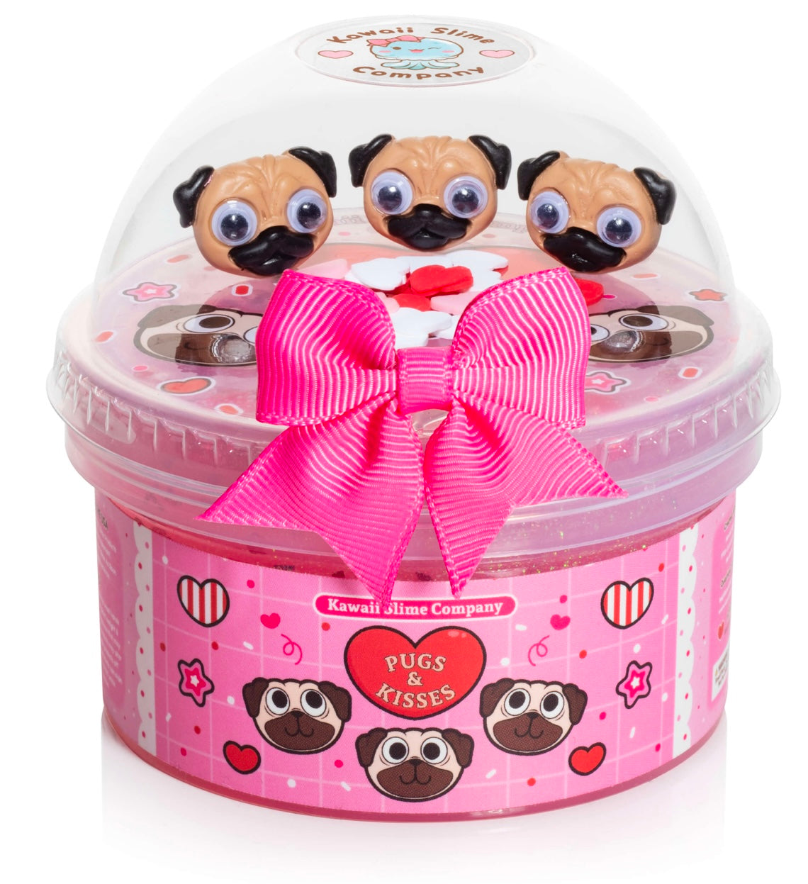 Soft and squishy, this Pugs & Kisses Clear Slime puts a slimey spin on pug kisses! Smothered in a strawberry lychee scent, get ready for a gooey surprise that will leave you with a smile on your face – and maybe a little drool, too. Who knew slime could be so pug-tastic?