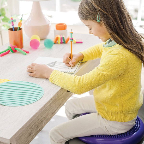Display this air-filled seat cushion with your office supplies or classroom resources to encourage improved concentration at home, work or school! Not only does Wobble Cushion help to boost focus on the task at hand but, when placed on classroom or office chairs, it can help to strengthen core and back muscles too. It can also be laid on the ground to work on balance. Perfect for both adults and children, this wobble cushion includes a two-sided sensory surface as well as a pump for easy inflating.