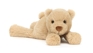 Smudge Bear is ready to snooze. It's no surprise that this teddy bear gives a great hug, with silky soft fluff in shades of honey,and podgy trumpet paws. This peaceful cub is ready to snuggle up. Limited availability of Tiny Size.