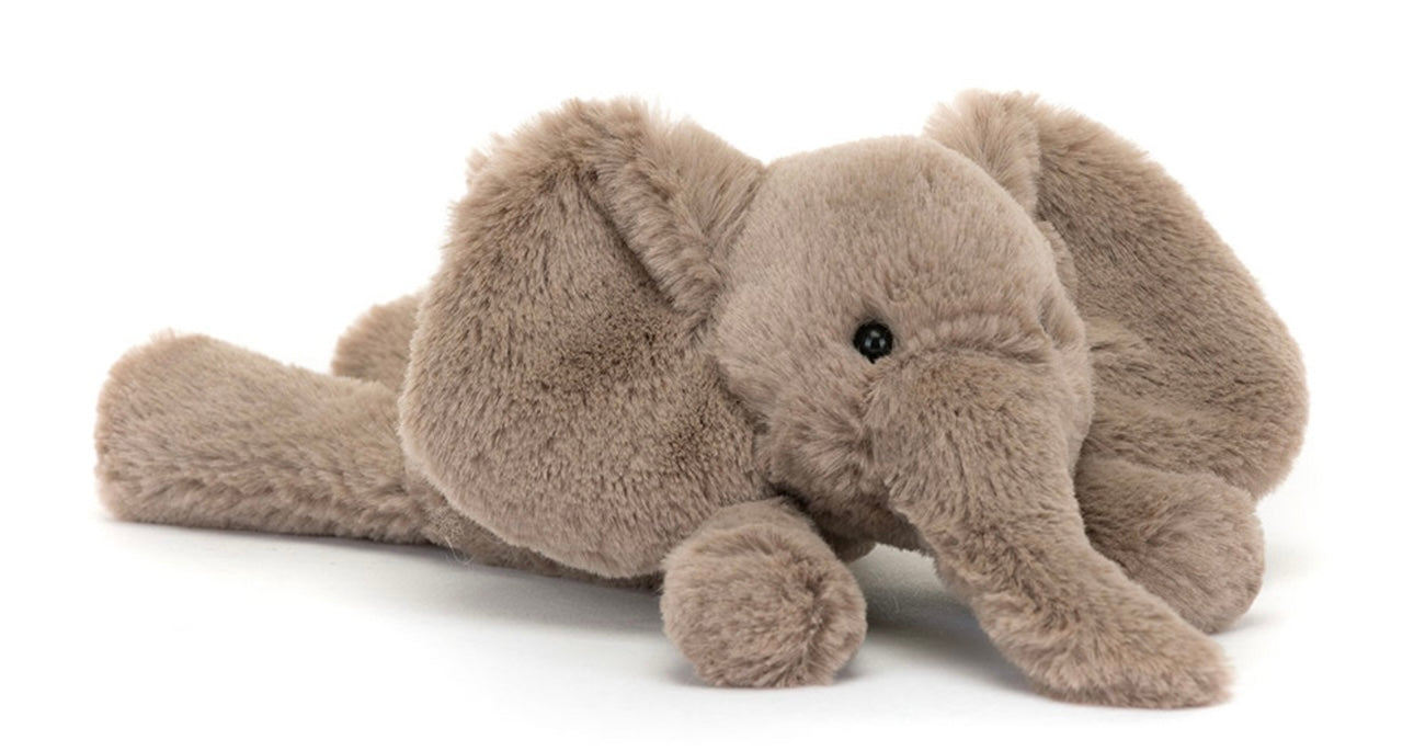 Smudge Elephant loves naptime, and keeps falling asleep on the march! Flop this supersoft silly down to sit on those squishable trumpet paws. With warm grey-brown fur, bright black eyes and great big fancy ears, Smudge Elephant is an adorable dreamer. Limited availability of Tiny Size.
