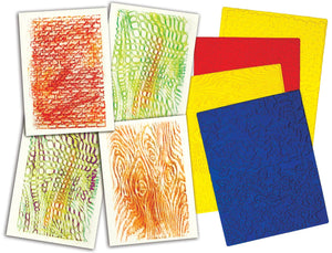 Explore various textures with Texture Rubbing Plates! This versatile tool is a valuable addition to any art curriculum, offering endless hours of engaging fun. Simply place paper over the rubbing plate and rub any medium across to reveal beautiful textures. Fill creations in with markers and colored pencils to add a personalized touch. The opposite side of the plate can be filled with molding clay to create captivating 3D textured sculptures. Fill plates with white glue and food coloring to create vibrant sun catchers or use on papier-mâché projects to add depth and dimension to your creations. The possibilities are endless with this set of unique rubbing plates!