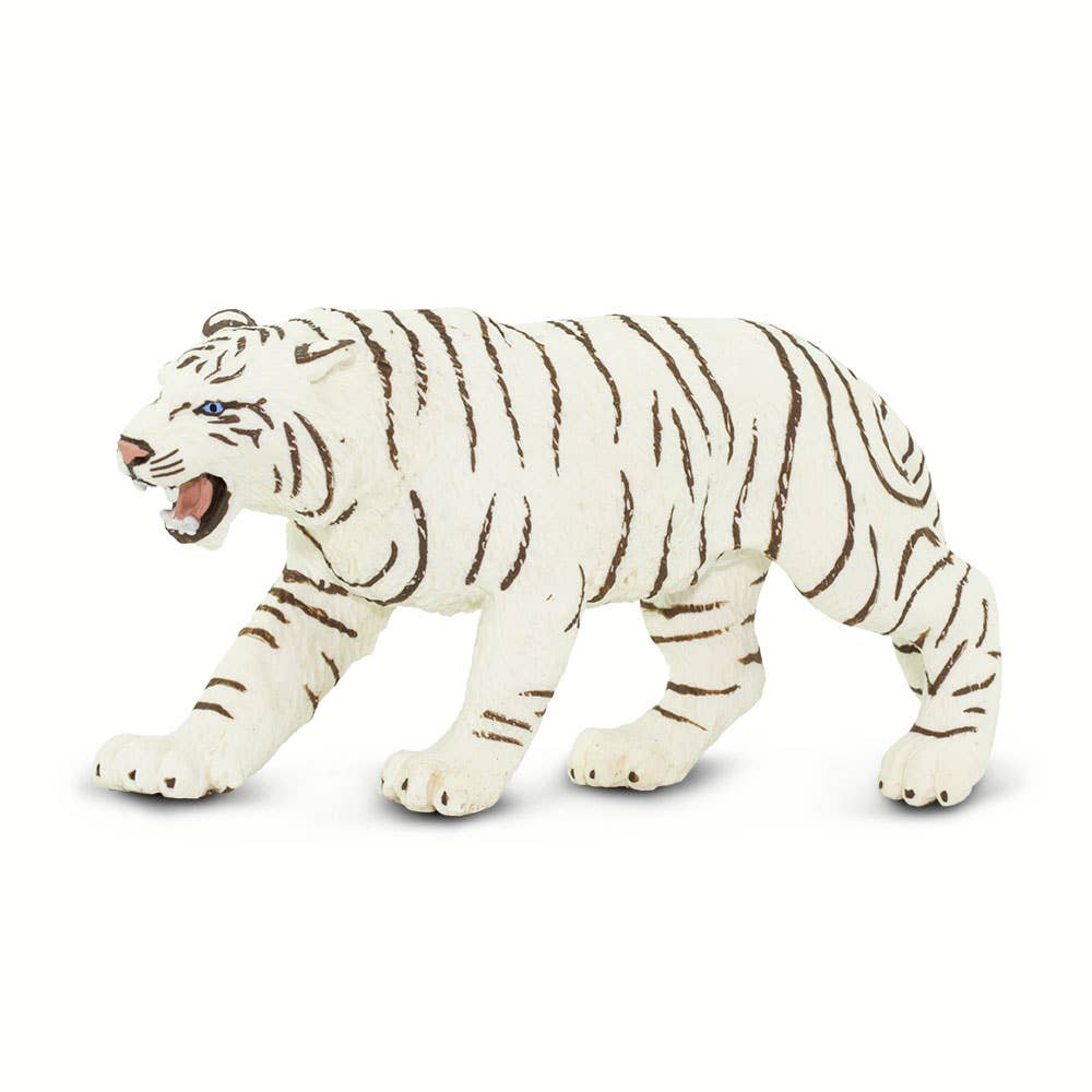 Characteristics: Like all Safari figurines, this white Bengal tiger toy model has been painted and crafted by professionals, making it a perfect gift for any and all nature enthusiasts. With an intimidating snarl, this tiger is laying claim to its most recent kill!